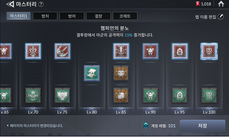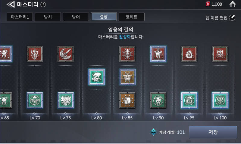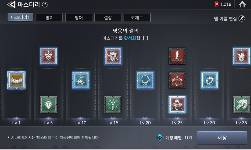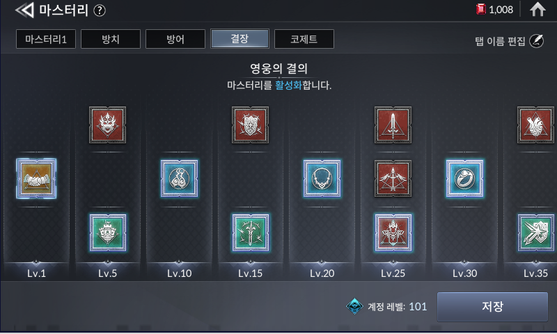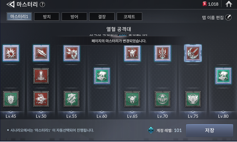 제 마스터리는 이렇게~ 거의 방어 위주의 마스터리...