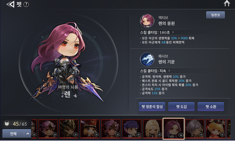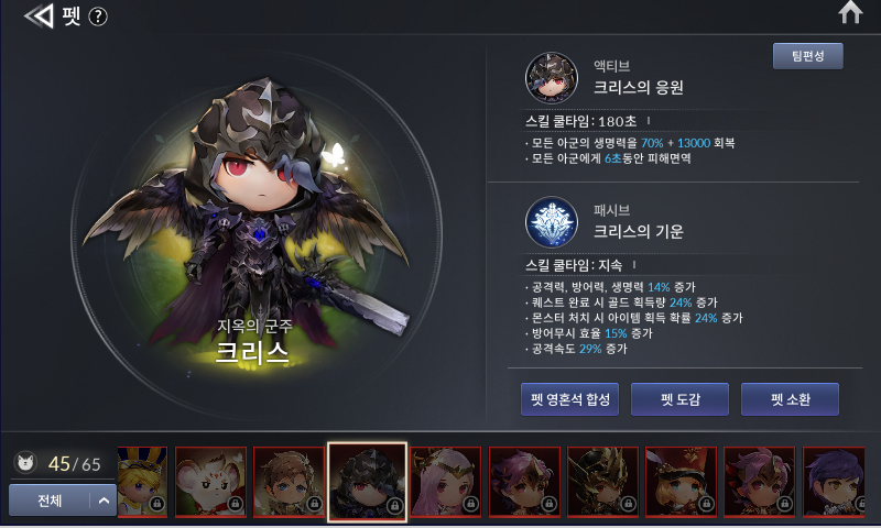 추천 펫은 제가 없는 이 세가지 중 하나 ㅠㅠ 크리스, 렌, 아일린이 있다면 도전해 보세요~