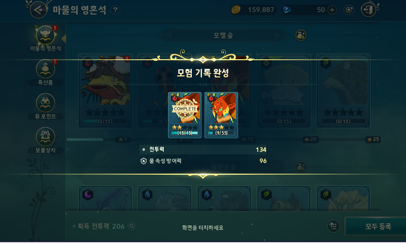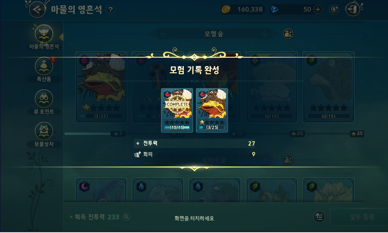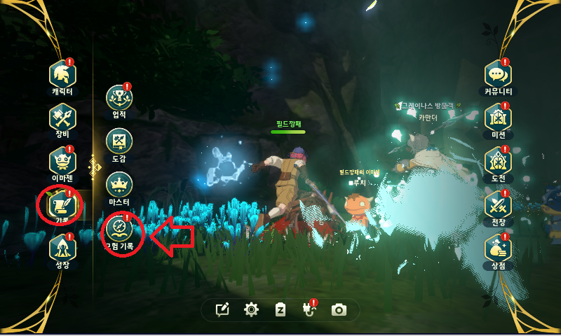 몬스터 영혼석을 획득해서 등록하고 싶다면 메뉴->기록->모험기록으로 이동해주세요