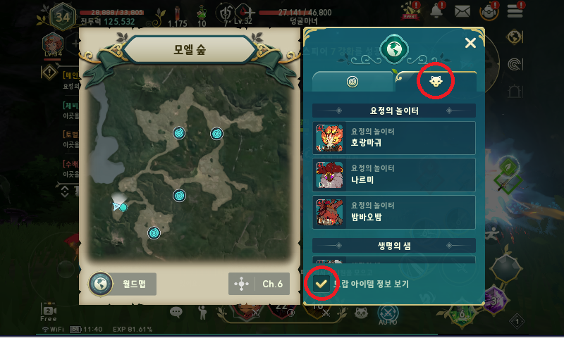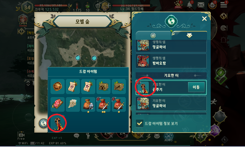 그리고 몬스터 모양의 아이콘과 아래에 보이는 드랍 아이템 정보 보기를 체크해 주세요~