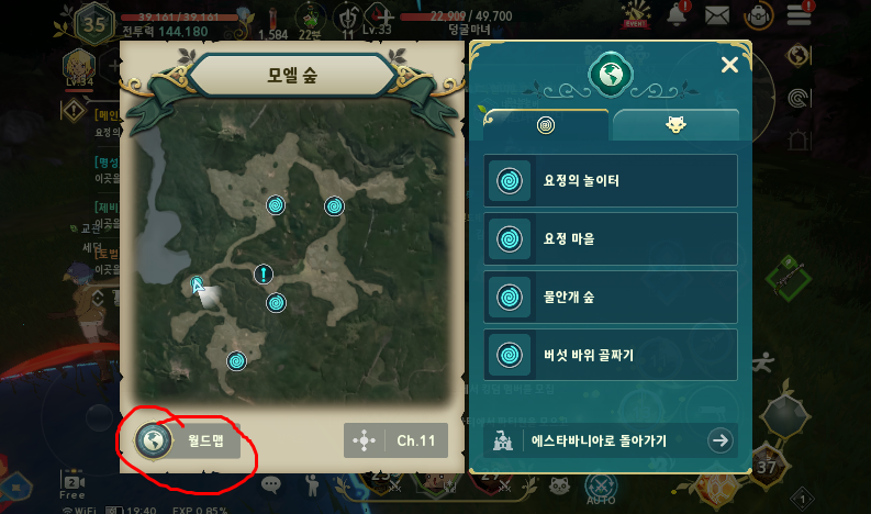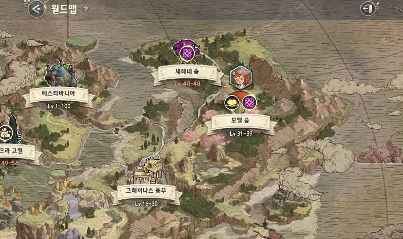 월드맵에서 자신의 레벨에 맞는 혹은 사냥하고 싶은 맵을 선택합니다
