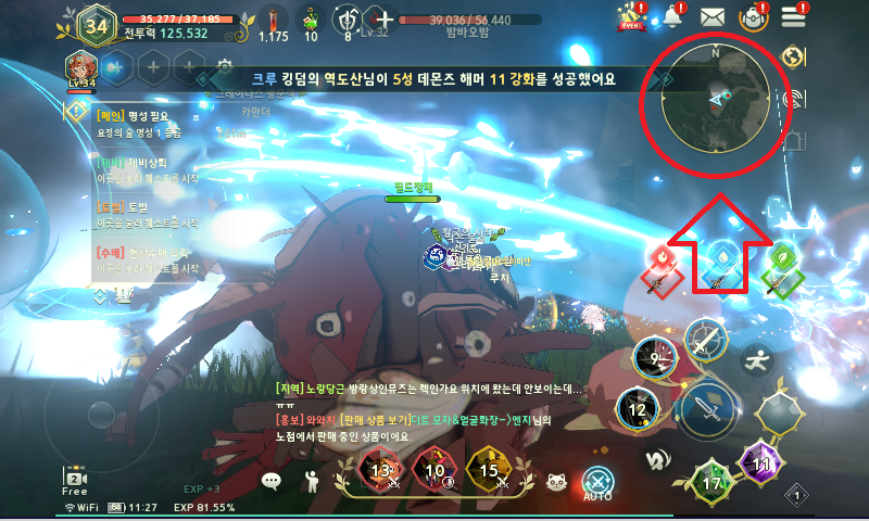 우측 상단에 미니맵이 보이시죠? 미니맵을 살포시 누릅니다