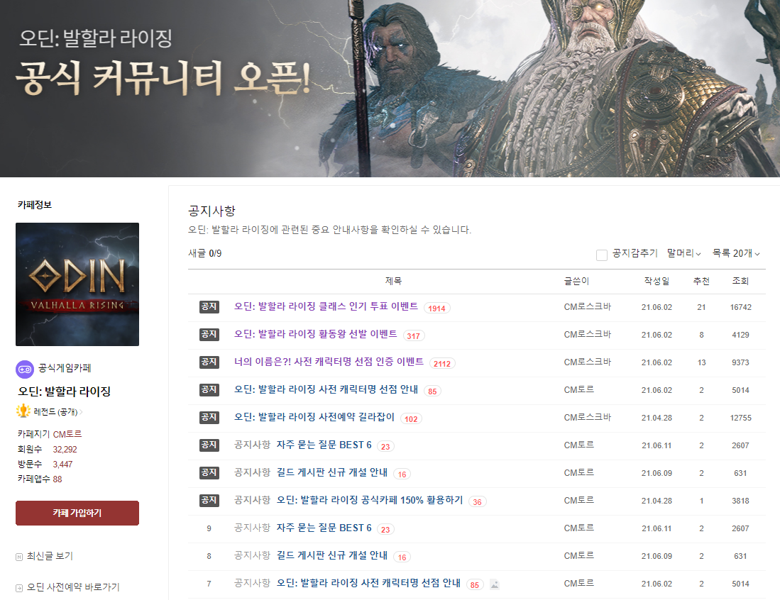 오딘 공식카페 사이트는 여기입니다. 짭아니고 공식 오딘 커뮤니티 사이트입니다