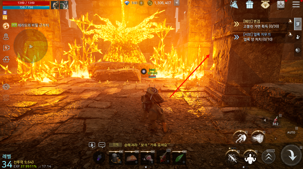 레라드의 비밀 근거지로 이동해서 아래쪽으로 가다보면 불타는 조형이 보일건데 여기서 뒤쪽 공간을 보면 보물 상자가 있는걸 확인 할 수 있습니다.