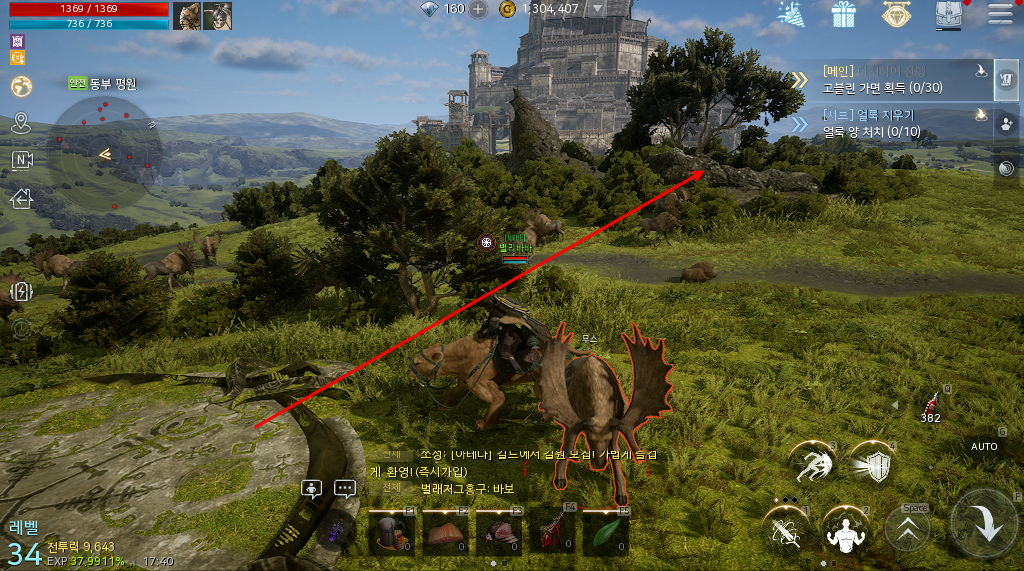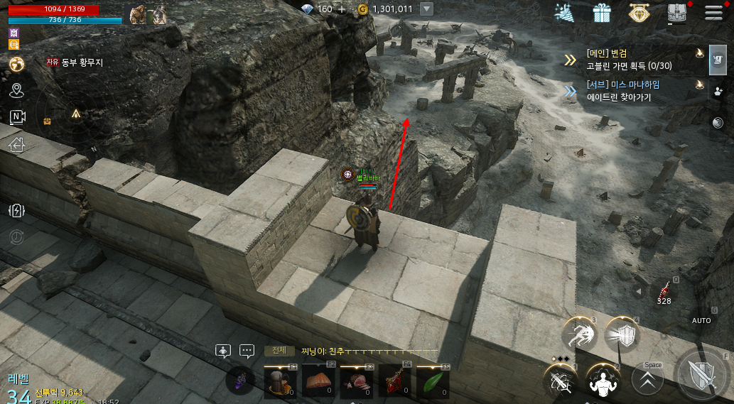 북부 평원으로 이동해서 옆쪽에 부서진 성(명칭을 잘 모르겠음) 이곳 꼭대기에 올라가면 보물 상자를 획득할 수 있습니다
