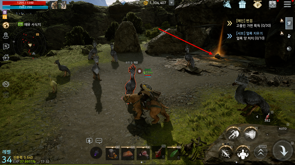 에뮤 서식지로 이동해서 지도에 보이는 4시방향으로 이동하면 바로 보물 상자를 획득할 수 있습니다.
