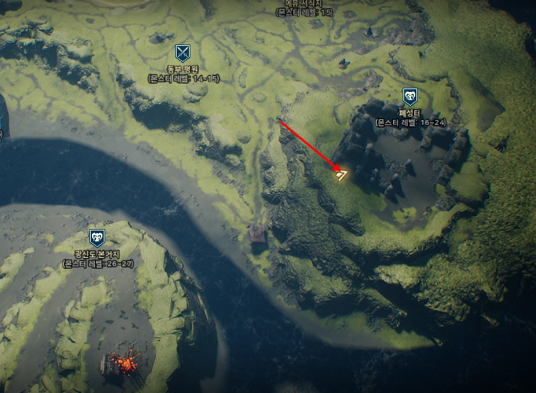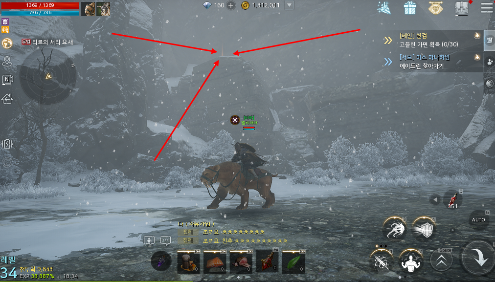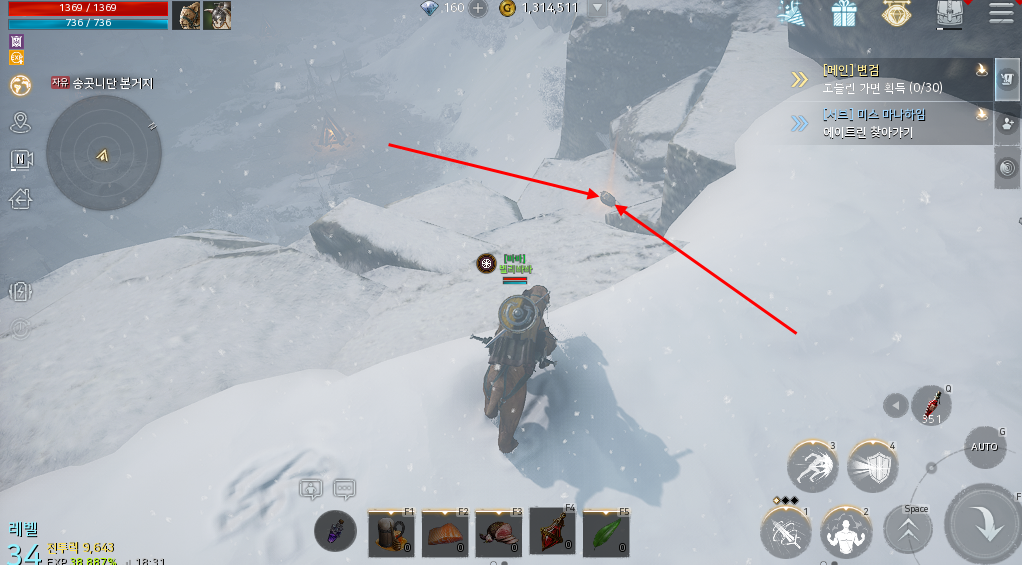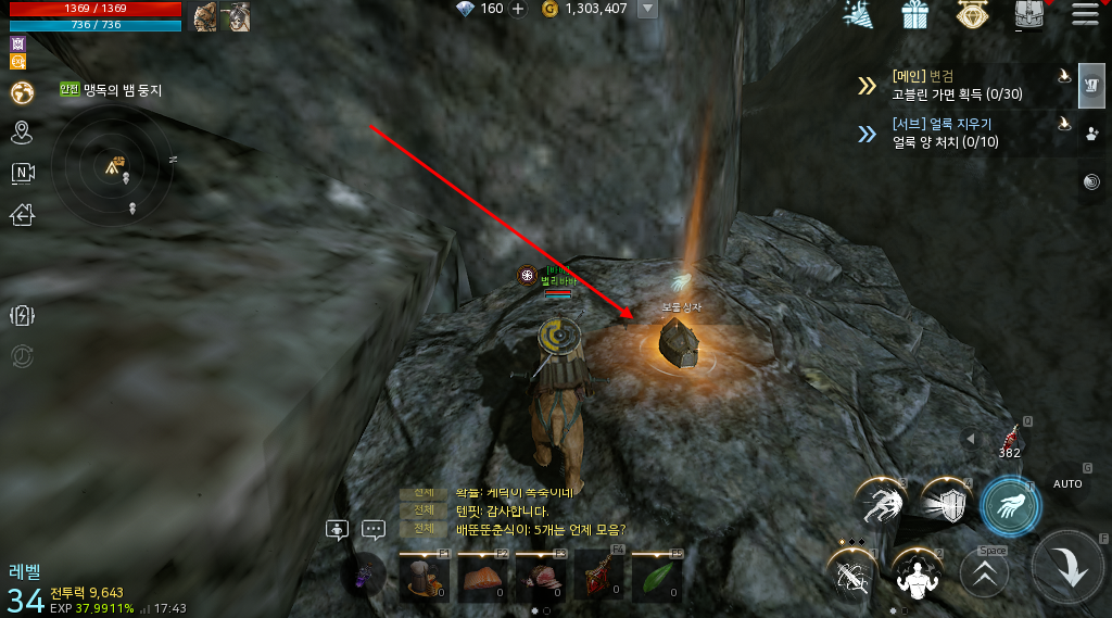 지도를 보고 따라가다보면 절벽이 보일겁니다 거기 위로 올라가면 보물상자를 쉽게 확인할 수 있습니다