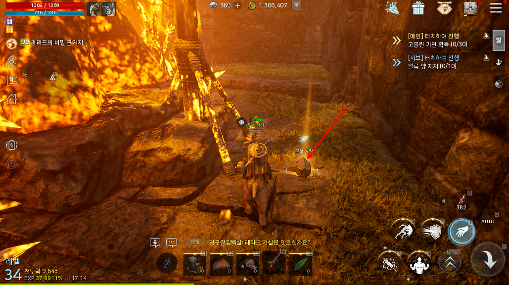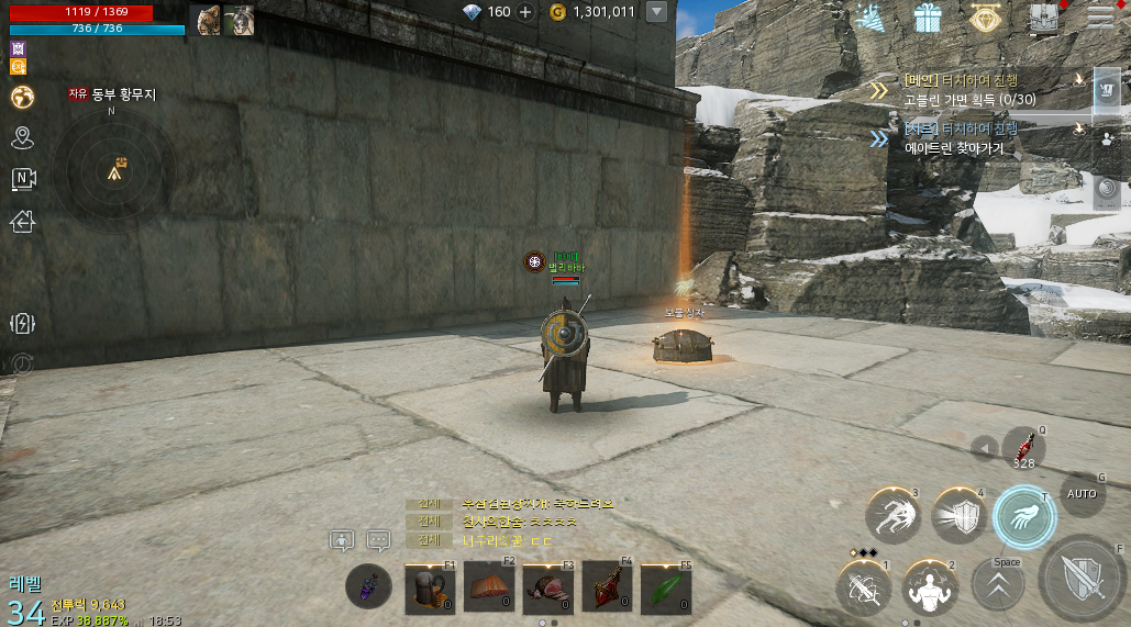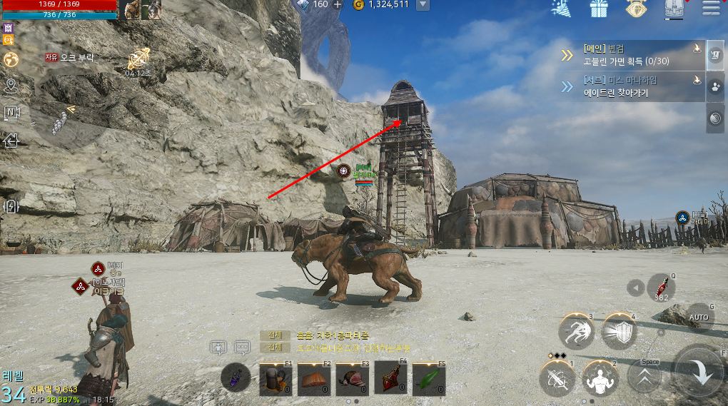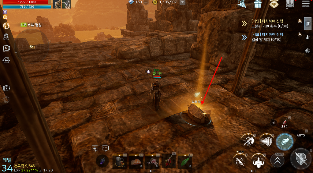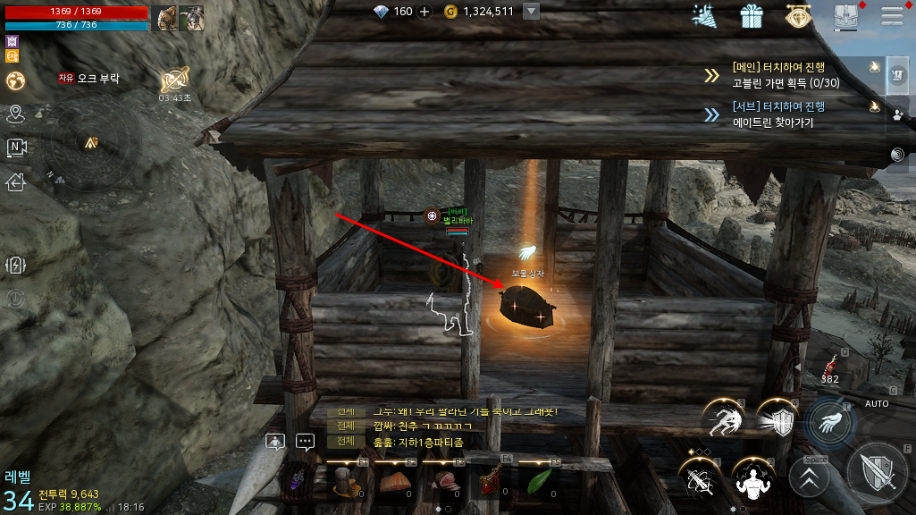 오크부락 파르바 보스지역 쪽으로 이동하다보면 위와 같은 건물이 하나 보일겁니다. 이곳에 올라가보면 바로 보물상자를 확인할 수 있습니다