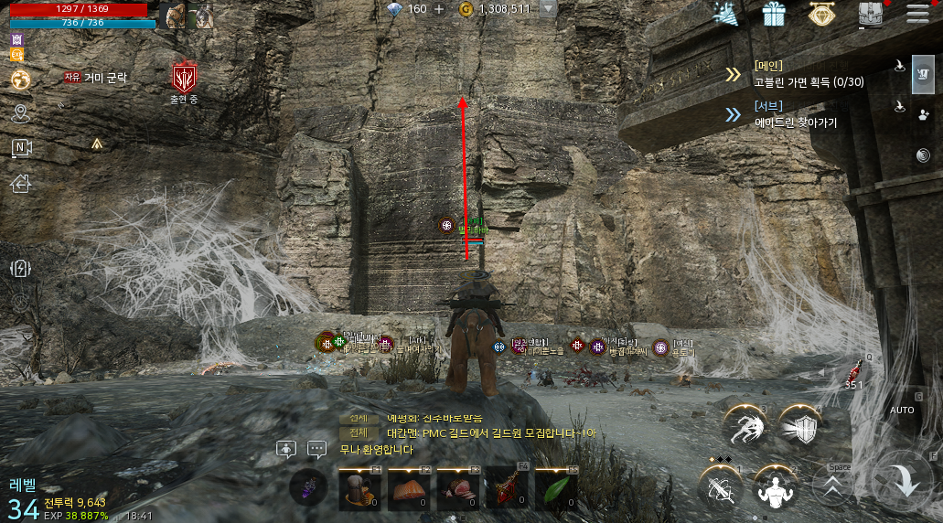 거미군락으로 이동해서 12시쪽으로 가다보면 위와 같은 절벽이 보일겁니다. 이곳으로 올라가보면 위와 같이 보물상자를 확인할 수 있습니다.