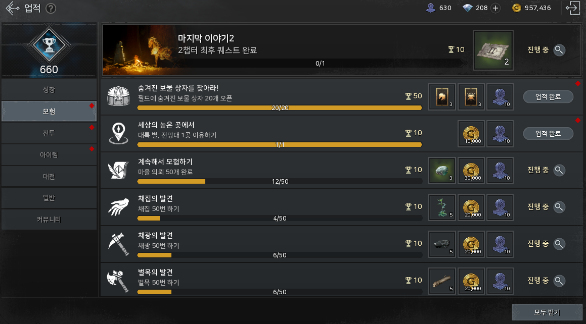 보물을 다 찾았다면 이제 업적까지 완료해주면 끝!!