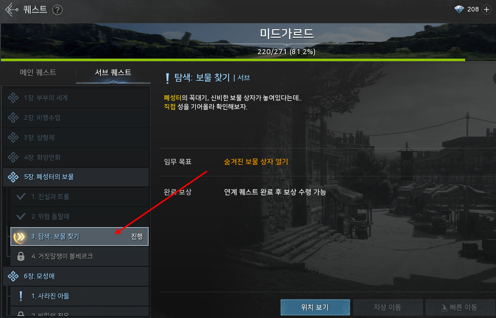 서브퀘를 진행하다보면 5-3에서 자연스럽게 보물 상자 위치를 알려줍니다.