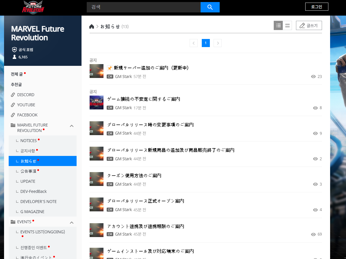 먼저 공식 홈페이지 주소는 https://forum.netmarble.com/marvelfuturerev입니다 짭 아니구요 공식 커뮤니티(공카)입니다 아직 썰렁~~~