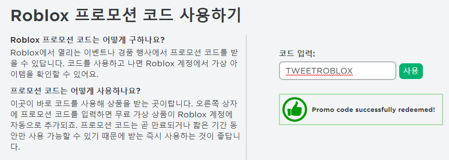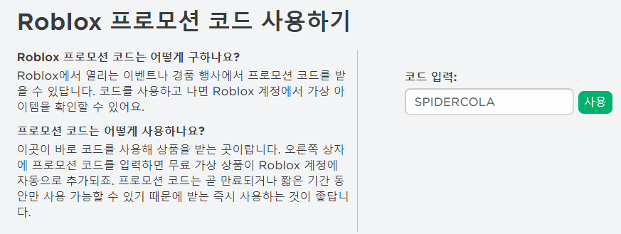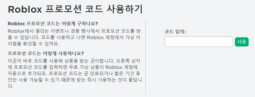 먼저 위의 링크를 통해 로블록스 프로모코드 페이지에 접속해 주세요