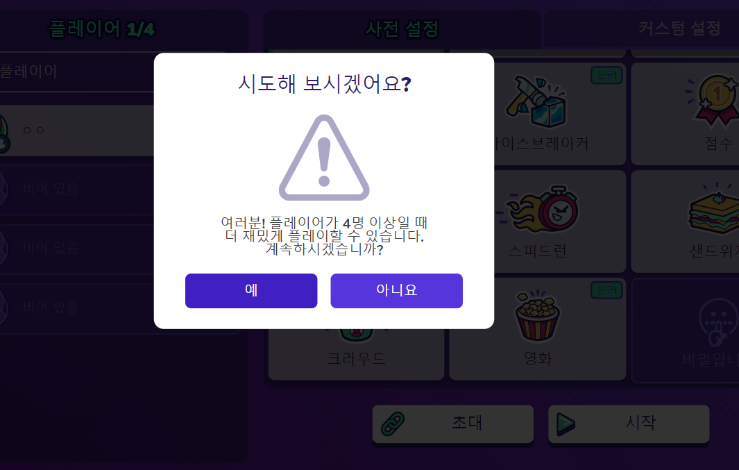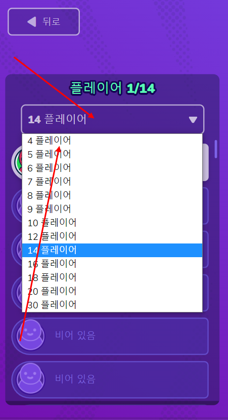 다음은 함께 플레이할 사용자 수를 정해야 됩니다 4인부터 30인까지 플레이가 가능하니까 참고하시길~
