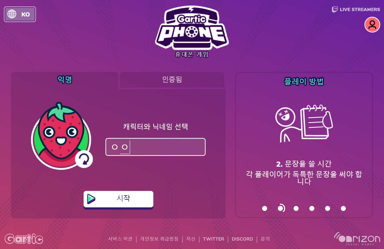 이게 바로 인싸게임 갈틱폰입니다. 전체적인 그래픽도 귀엽고 한글 지원도 아주 잘되어 있는게 특징입니다. 먼저 사이트 접속부터 해야겠죠? 사이트는 바로 아래!!