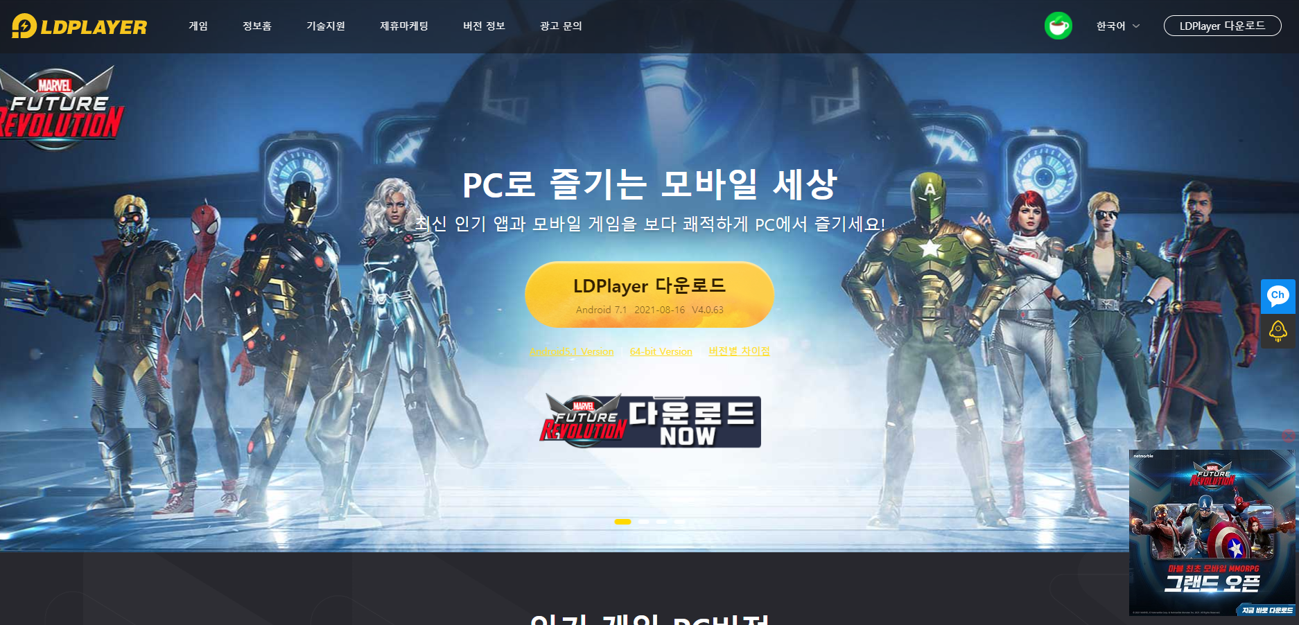오늘은 마블퓨처 레볼루션 pc버전 플레이 하는 법을 알아보도록 하겠습니다. 아시는 분은 아시겠지만 모바일 게임을 PC로 플레이하기 위해서는 앱플레이어가 필요합니다. 마블퓨처 레볼루션 같은 경우에는 현재 가능한 앱플레이는 3가지 정도가 있으니까 한번 살펴보시고 이용해 보시기 바랍니다.