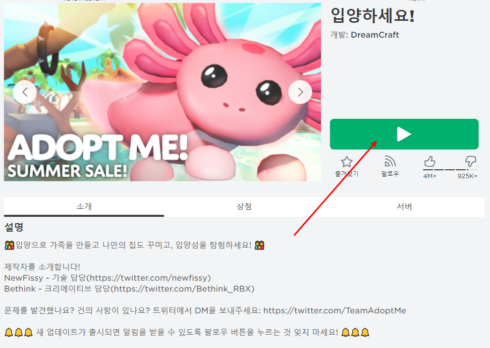 자!! 이제 플레이하고 싶은 게임을 선택해 주세요~ 전 가장 인기 있는 입양하세요!를 선택하겠습니다.
