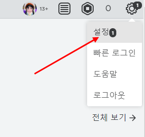 우측 상단에 톱니바퀴 모양의 아이콘이 보이시죠? 해당 아이콘을 클릭하신 뒤 설정 메뉴로 들어가 주시기 바랍니다.