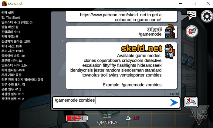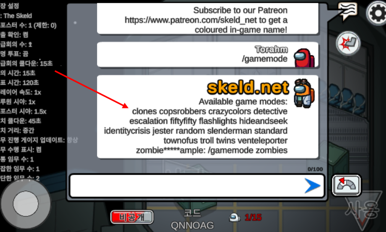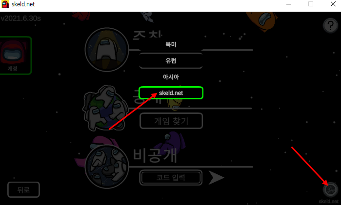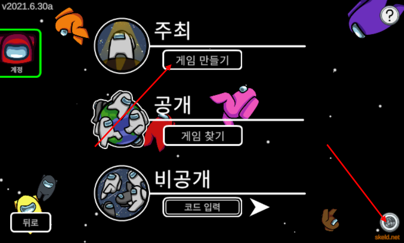 PC와 동일하게 서버(skeld.net) 선택하시고 방을 만들어 주세요~