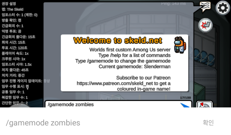Switched to Zombie game mode라고 나오죠? 이렇게 되면 정상적으로 모드가 적용이 된겁니다~