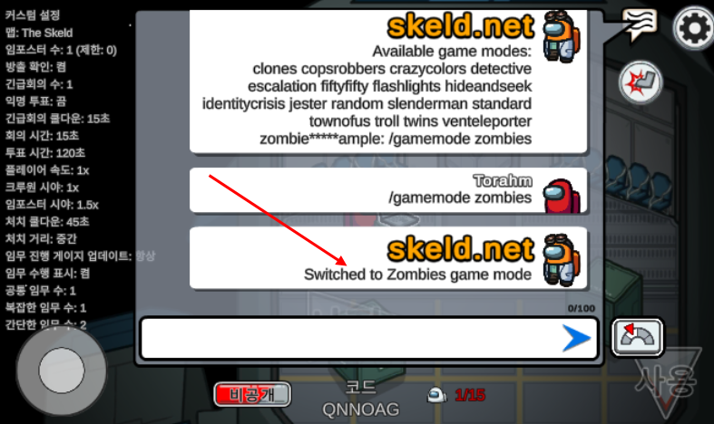 모드 적용은 PC와 마찬가지로 채팅창에 /gamemode + 모드 (예 : gamemode zombies) 를 선택해 주시면 끝입니다!! 잘 모르겠다 싶으면 위쪽에 PC버전 내용을 한번 살펴보세요~