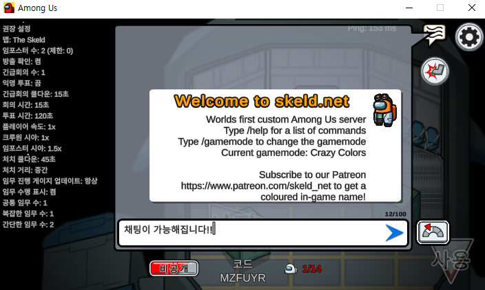 그리고 인게임에서 채팅을 써보면 이렇게 채팅이 가능해 집니다~ 간단하죠? 그럼 참고하시고 즐겜하세요~