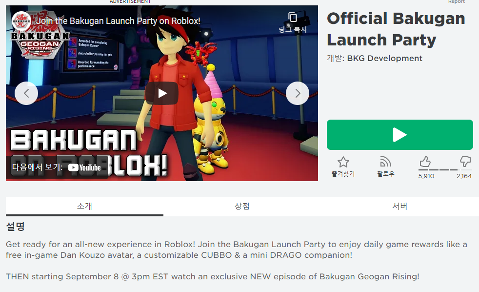 먼저 위의 로블록스 게임에 접속해 주세요~ 게임 이름은 Official Bakugan Launch Party입니다