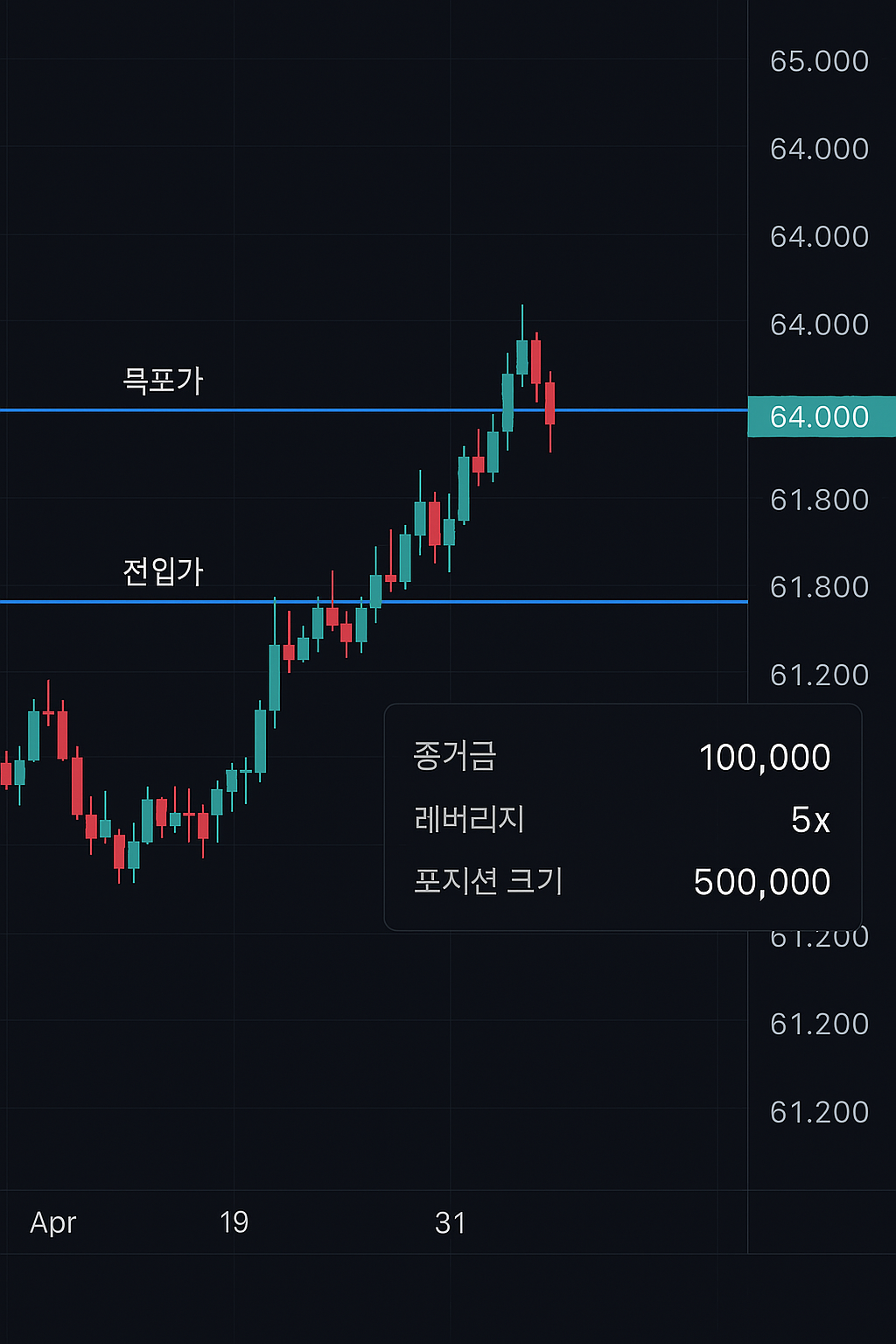 | 초기 증거금 | 포지션 진입 시 필요한 최소 금액 |